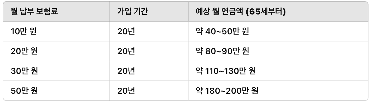 ✔ 최대 40년 가입하면 월 250만 원 이상 받을 수도 있음!