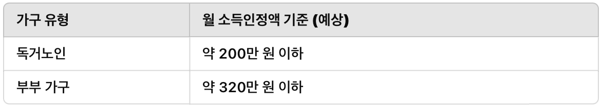 ✅ 소득인정액 기준 (2025년 예상)